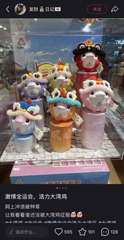 在“大湾鸡”的顶流效应下,相关文创产品引发消费热潮,部分门店热销款暂无现货。网友笑称,“大湾区有自己的Labubu。”