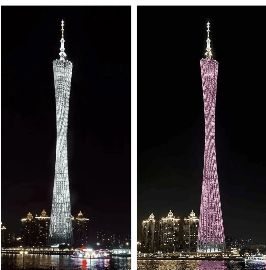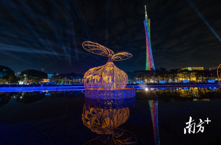 在16日开幕的广州国际灯光节上,它也华丽返场,和广州塔同框。