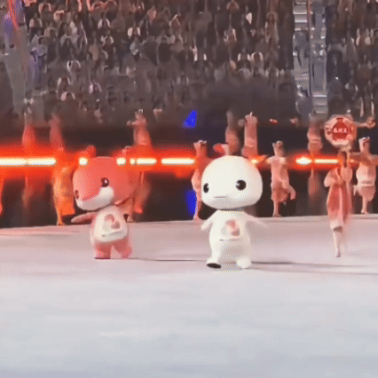这还没完,全运会开幕式上,吉祥物 " 大湾鸡 " 跟随运动队出场再次萌翻全网: