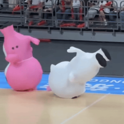 这群“小孩哥”、“小孩姐”彻底放飞自我——卖力甩头、转圈跳跃、互相追逐,甚至隔着头套偷偷比心。