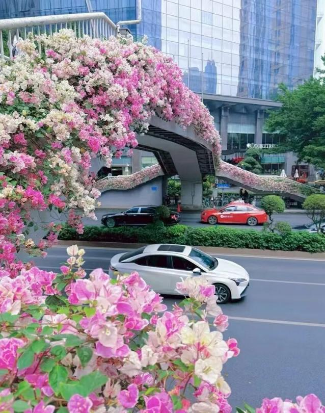 如今,全市240余座天桥已悄然串联成一条“花路”,真正实现了“车行花海中,人在画中游”。