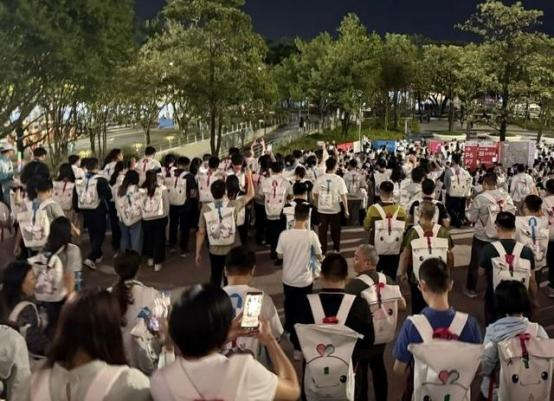 “大湾鸡”的走红不仅限于线上玩梗,更催生了一款现象级周边——全运会“喜乐包”。开幕式结束当晚,五万多名观众背着同款书包涌出现场的画面,迅速占领了各大社交平台。